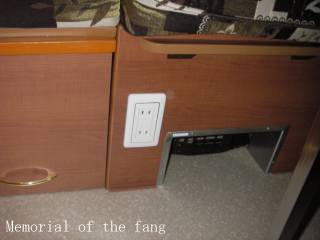 「追加12Vコンセント」 妻の要望によりバンクベッド部に3連12Vコンセントを追加しました。 確かにバンク部の手元灯や常夜灯に便利ですし、充電や掃除機にも便利です。 |