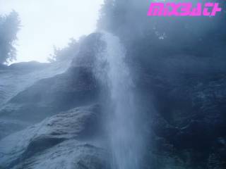 滝に打たれることは可能だが、結構痛い。それだけではなく、滝の近くでは飛沫が霧状で、酸性湯が目にしみてかなり痛い。